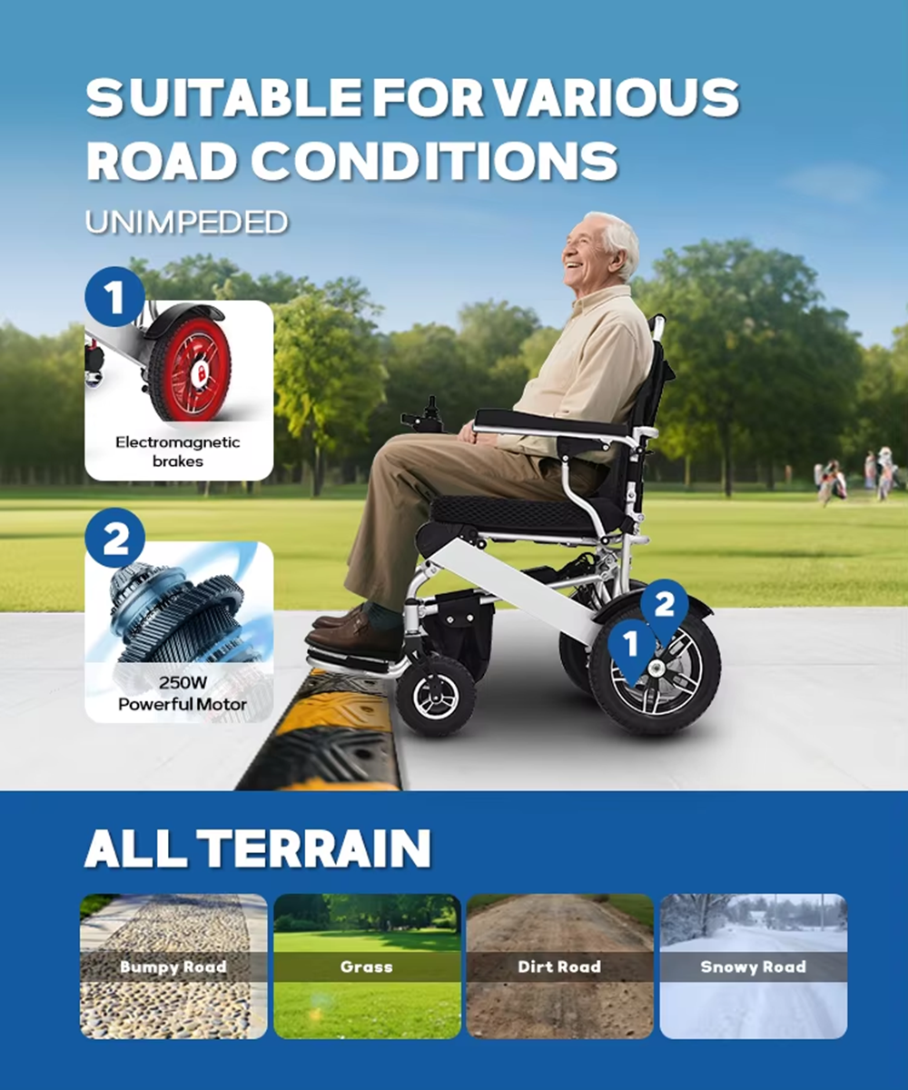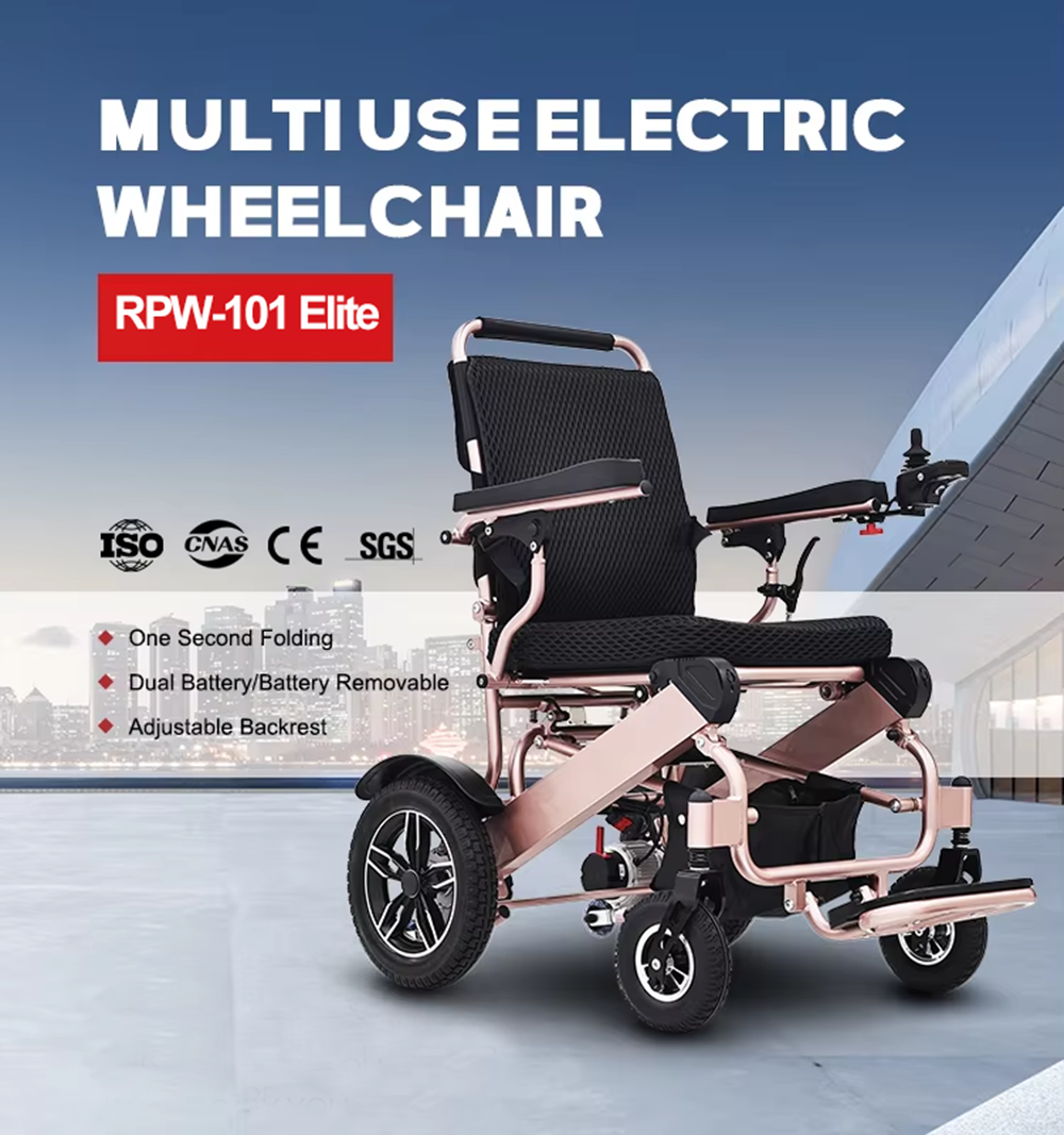 Der RPW-101 Elite ist die Krönung der Elektrorollstuhl-Innovation. Er verfügt über einen AL6061-Aluminiumrahmen in Raumfahrtqualität und ist mit bürstenlosen 250-W-Sinusmotoren ausgestattet. Dieser Rollstuhl bietet eine sanfte, kraftvolle und leise Fahrt, selbst unter anspruchsvollen Bedingungen.