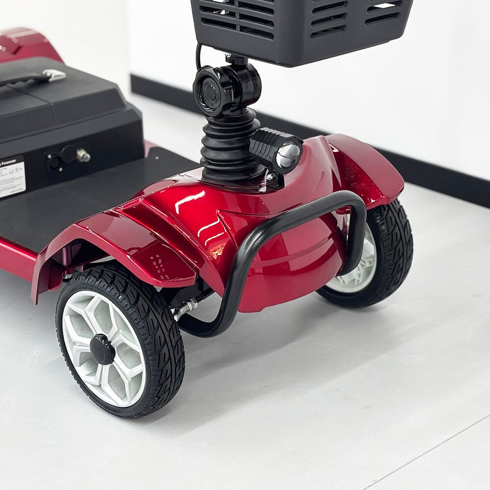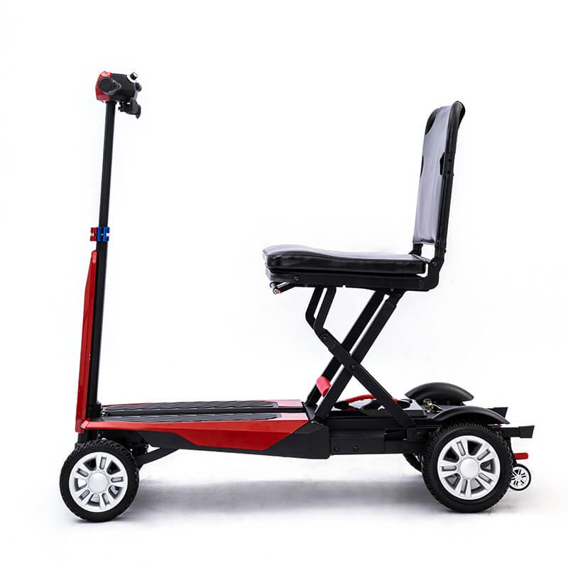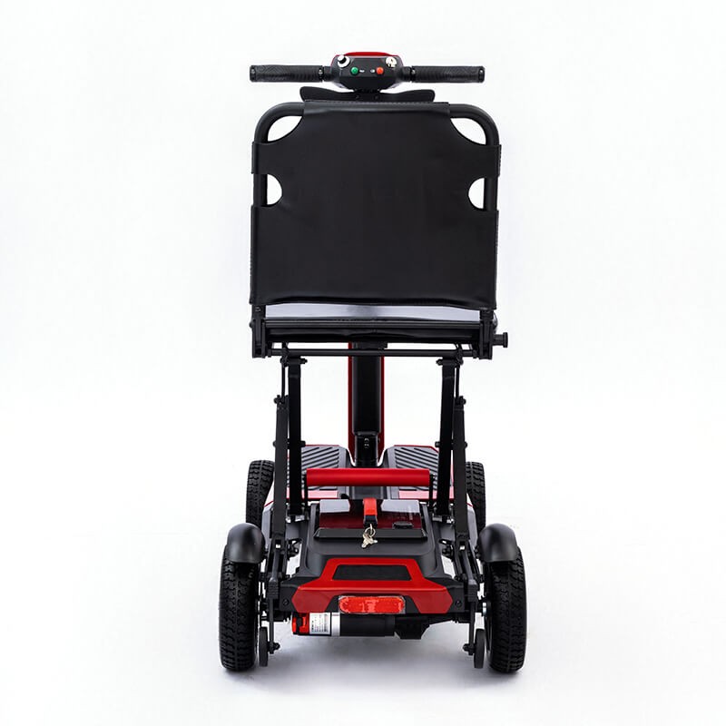 Der RMS-102 ist ideal für Reisen und Transport aller Art. Er wird von einer flugtauglichen Lithiumbatterie angetrieben und bietet eine Reichweite von 24 km. Er lässt sich dank des roten Griffs einfach von Hand zusammenklappen.